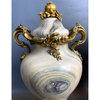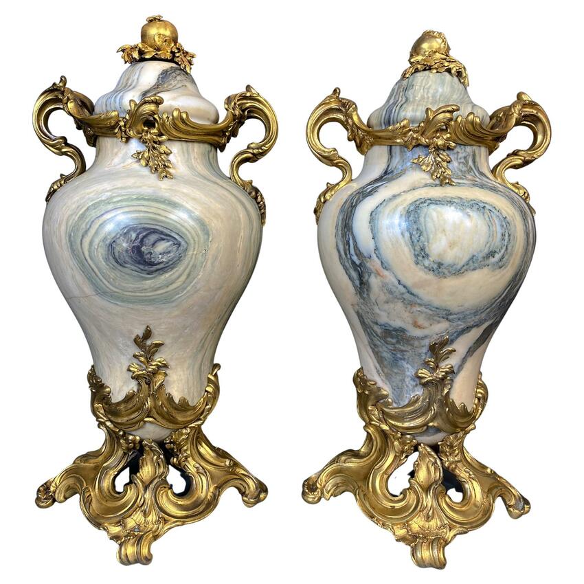 Pair French Gilt Bronze-Mounted Marble Urns with Pomegranate
